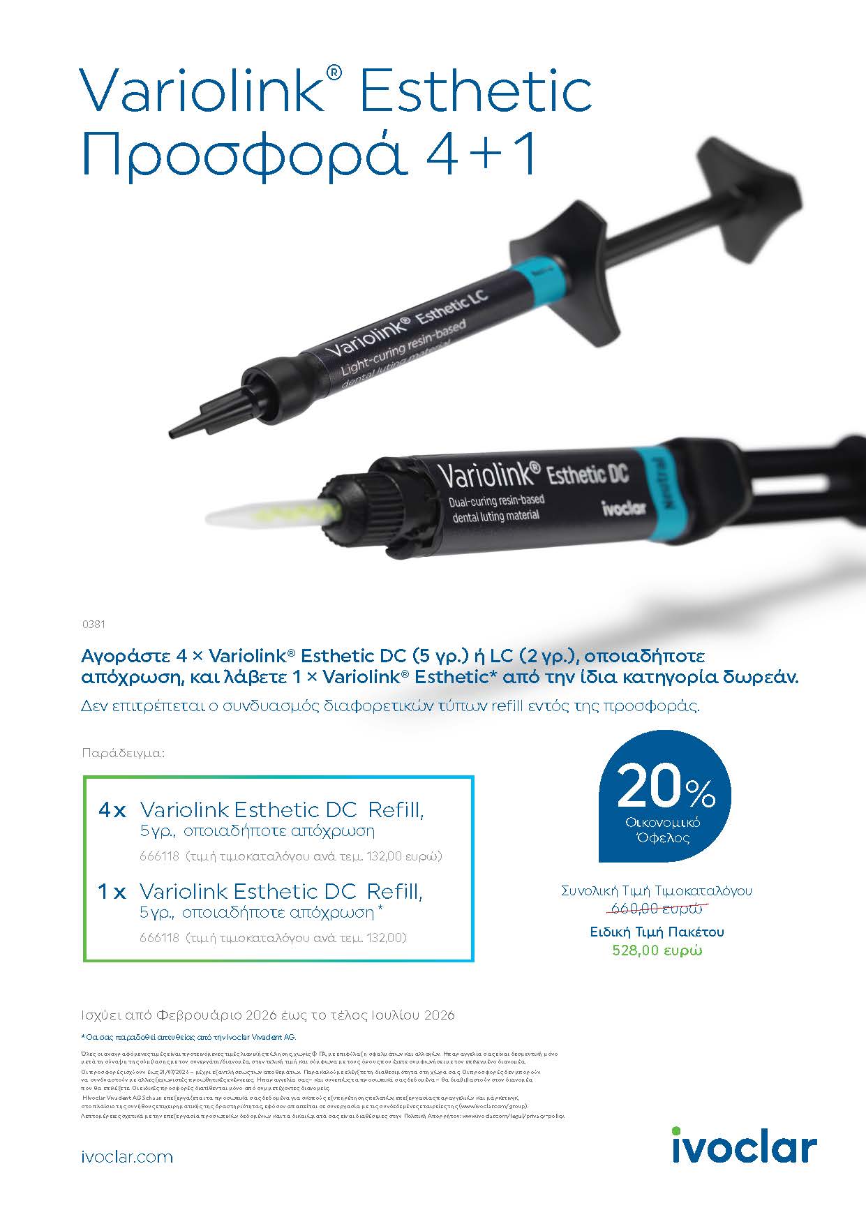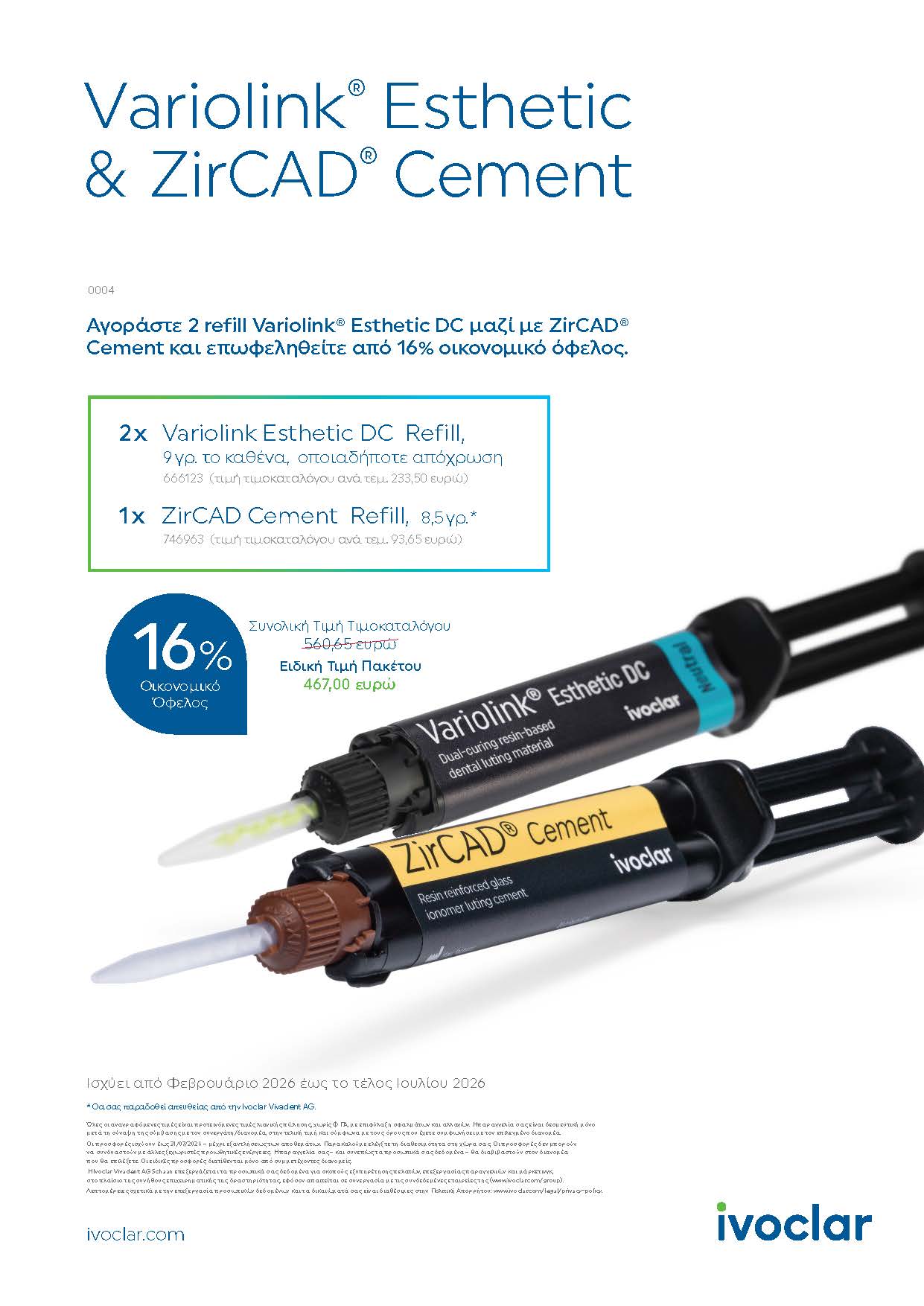Ανακαλύψτε τις προσφορές της Ivoclar που βρίσκονται σε ισχύ από τον Φεβρουάριο 2026 έως τέλος Ιουλίου 2026 και επενδύστε σε προϊόντα και λύσεις που εγγυώνται την αναβάθμιση της ροής εργασίας στο οδοντιατρείο σας!