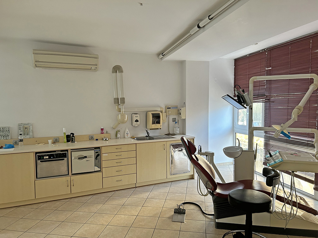 Ο χώρος διαθέτει σύγχρονο οδοντιατρικό εξοπλισμό, έτοιμο για άμεση λειτουργία, χωρίς καμία επιπλέον επένδυση. Περιλαμβάνει οδοντιατρική έδρα, εργαλεία, αποστειρωτή, έπιπλα, γραφείο υποδοχής και βοηθητικούς χώρους. Είναι ιδανικό για οδοντίατρο, ορθοδοντικό ή γναθοχειρουργό.