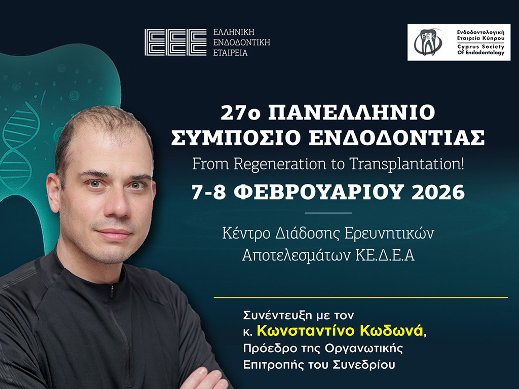 Το 27ο Πανελλήνιο Συμπόσιο Ενδοδοντίας της Ελληνικής Ενδοδοντικής Εταιρείας (ΕΕΕ) ετοιμάζεται να «ανοίξει τις πύλες» του στη Θεσσαλονίκη στις 7 και 8 Φεβρουαρίου 2026, έχοντας ως κεντρικό θεματικό άξονα «From Regeneration to Transplantation». Η φετινή διοργάνωση παρουσιάζει μια οργανωτική ιδιαιτερότητα, καθώς πραγματοποιείται σε συνεργασία με την Ενδοδοντολογική Εταιρεία Κύπρου (ΕΕΚ), σηματοδοτώντας μια σημαντική σύμπραξη στον χώρο της ενδοδοντίας. Το «ΟΒ» συνομίλησε με τον Επίκουρο Καθηγητή Ενδοδοντολογίας της Οδοντιατρικής Σχολής ΑΠΘ και Γενικό Γραμματέα της ΕΕΕ, κ. Κωνσταντίνο Κωδωνά, για το πώς γεννήθηκε αυτή η συνεργασία, αλλά και για όσα αναμένεται να ξεχωρίσουν στο φετινό επιστημονικό πρόγραμμα.